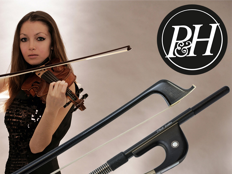 P&H BOWS LONDON leistet mit innovativen Ideen und qualitativ hochwertigen Produkten einen großen Beitrag zum modernen Bogenbau und ist spezialisiert auf Fiberglas- und Karbonbögen. Der Hersteller erweitert sein Sortiment an Bassbögen und bietet ab sofort auch einen Karbon Bassbogen als deutsches Modell an. Der 4/4 Bogen in Top-Qualität ist mit echtem Rosshaar bezogen und hält eine stabile, vom Klima unabhängige Spannung über Jahrzehnte. Der Ebenholzfrosch mit Schub hat ein Abalone Inlay und das bekannte Pariser Auge.