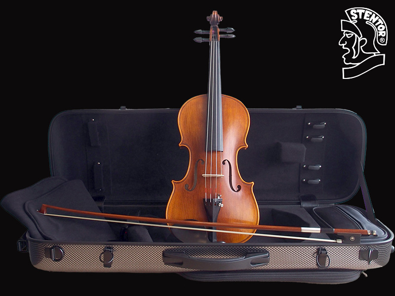 Das neue Outfit der STENTOR ARCADIA Violine lässt keine Wünsche offen. Die traditionell gefertigte 4/4 Violine wird aus den hochwertigsten Materialien und ausschließlich in der Meisterabteilung der STENTOR Werkstätten gebaut und in England veredelt. Die von Hand aufgetragene SCHELLACK LACKIERUNG unterstützt einen warmen und tragenden Klang. Der hochwertige FERNAMBUK BOGEN mit SILBERGARNITUR wird mit echtem Pferdehaar bezogen, der Ebenholzfrosch mit Zwickel ist mit dem bekannten Pariser Auge ausgestattet. Die Violine wird mit einem AUBERT STEG und PIRASTRO TONICA Saiten ausgestattet. Ein modernes, robustes Polycarbonat Etui mit Schultergurten, Notenfach und herausnehmbarer Zubehörtasche rundet das Outfit ab.