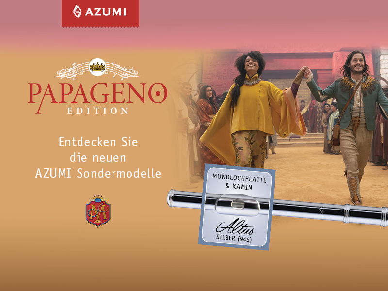 AZUMI lädt Sie herzlich dazu ein die einzigartigen Sondermodelle in der Z2 und S3 Serie zu entdecken. Die exklusive ALTUS Silber Legierung (mit einem Silberanteil von 94,6 %) für Mundlochplatte und Kamin erzeugt einen äußerst kraftvollen und farbenreichen Klangcharakter. Die hervorragenden Klangeigenschaften der wertvollen Modelle der Papageno Edition werden Sie beim Musizieren begeistern.