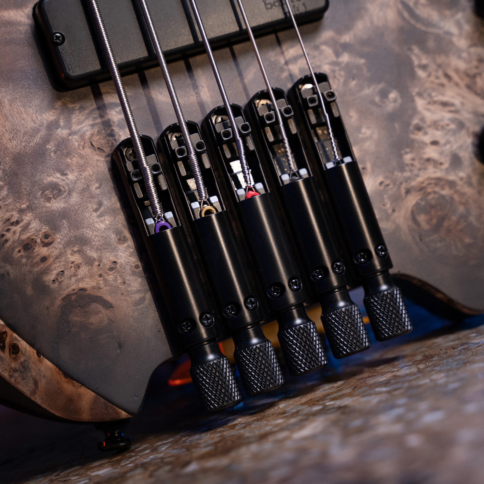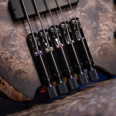 • Brücke: Custom Design Brücke mit individuellen Saitenreitern & Mechaniken für Headless Systeme