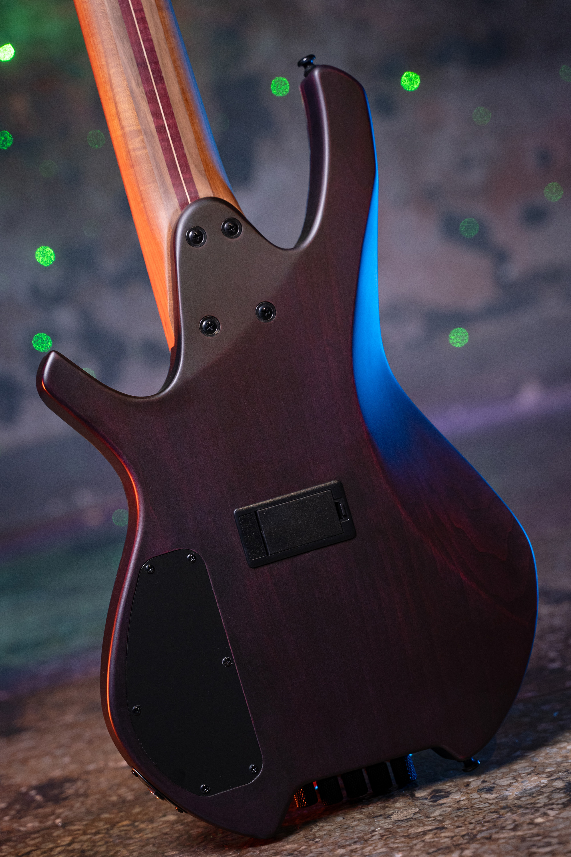 • Hals: 7-teiliger Hals aus geröstetem Ahorn, Walnuss, Amarant und Ahorn