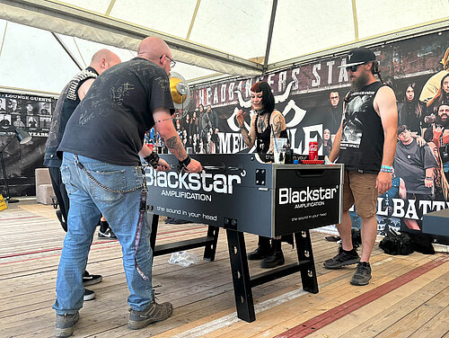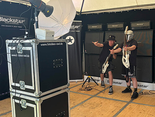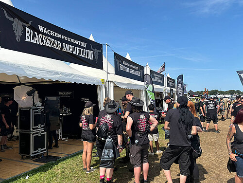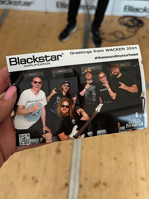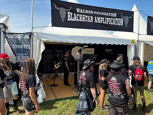 Als langjähriger Partner der renommierten "Wacken Foundation", die zahlreiche soziale Projekte unterstützt, war BLACKSTAR in diesem Kontext mit einem eigenen Stand vertreten. Hier hatten die Besucher die Möglichkeit, sich vor einer großen Lautsprecherboxenwand fotografieren zu lassen und in die Rolle eines Rockstars zu schlüpfen. Das entstandene Foto konnte sofort mitgenommen oder über soziale Medien mit der Welt geteilt werden. Diese Aktion wurde äußerst gut aufgenommen und der BLACKSTAR-Stand war zu jeder Tageszeit stark frequentiert. Eine gelungebne Werbemassnahme! Auch mit unserer Marke HAGSTROM konnten wir die Aktivtäten der Wacken Foundation mit der Bereitstellung eines wertvollen Sachpreisen in Form einer HAGSTROM Gitarre unterstützen.