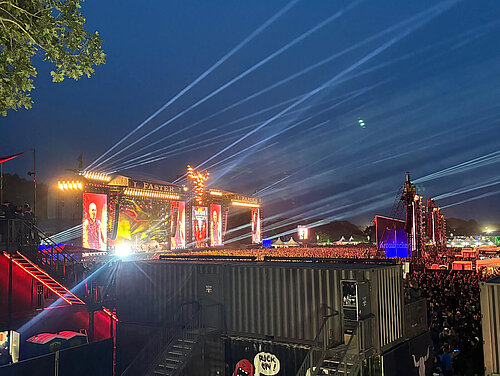 Das Wacken Open Air (WOA) ist eines der größten und bekanntesten Heavy-Metal-Festivals der Welt. Seit seiner Gründung im Jahr 1990 zieht das Festival jährlich tausende Metal-Fans aus aller Welt nach Wacken, einem kleinen Dorf in Schleswig-Holstein, Deutschland; dieses Jahr wurden 82.0000 Besucher erwartet. Die Tickets für das Festival sind regelmäßig innerhalb kürzester Zeit ausverkauft, oft schon wenige Stunden nach Verkaufsstart. Das Festival bietet auf mehreren Bühnen eine Mischung aus weltbekannten Headlinern und aufstrebenden Newcomern. Neben den musikalischen Darbietungen gibt es zahlreiche andere Aktivitäten und Angebote. "Wacken" ist mehr als nur ein Festival, denn mit seiner einzigartigen Atmosphäre, den hochkarätigen Bands und den vielfältigen Aktivitäten ist es jedes Jahr aufs Neue ein Highlight im Festival-Kalender und ein Muss für jeden Metal-Liebhaber.