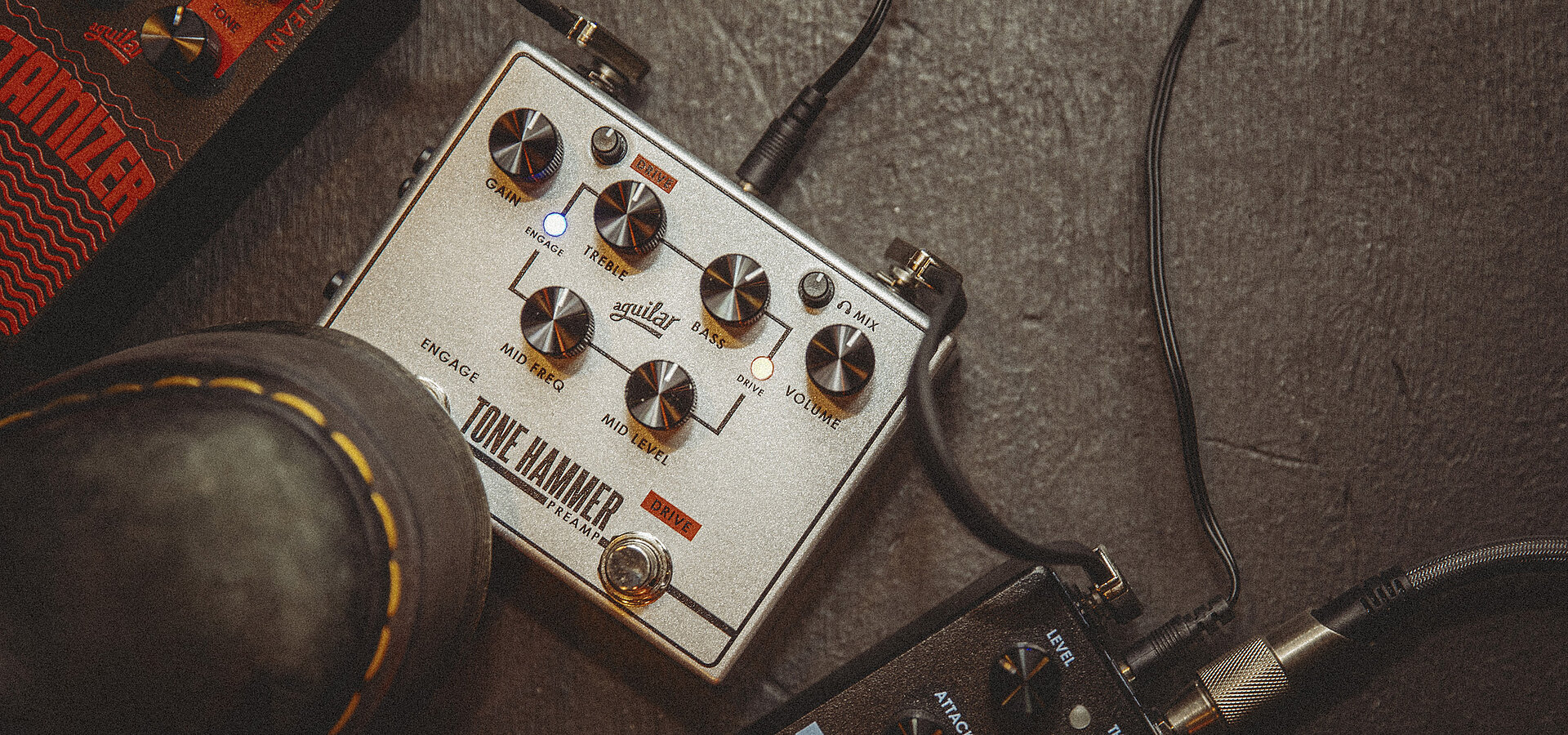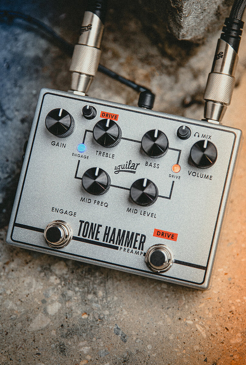 Entstanden im Herzen von NYC und auf der Straße gereift, ist dieser Preamp für Bassisten unverzichtbar, die einen inspirierenden Sound und Vielseitigkeit suchen. Mit seinem warmen, satten und dynamischen Klang ist der Tone Hammer eine unverzichtbare Preamp/DI Kombination für jeden Bassisten. Er bietet vollständig durchstimmbaren Mittenfrequenzbereich sowie Bass- und Höhenregler. Dank des erstklassigen DI-Ausgangs ist er sowohl für Studio als auch Bühne bestens gerüstet. Der überarbeitete Drive-Schaltkreis bietet nun einen erweiterten Arbeitsbereich, der mehr Gain und eine exakte Feinabstimmung neben der Gain-Kontrolle ermöglicht – von modernen Slap-Sounds über Vintage bis hin zu Overdrive und allem dazwischen. Die 18-Volt-Betriebsspannung sorgt für hohen Headroom, und der neue Kopfhörerausgang und Aux-Eingang machen das Tone Hammer Pedal zum idealen Begleiter für unterwegs oder zu Hause.